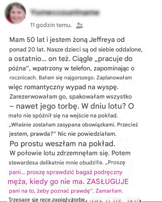 Obudziłam się, czując delikatne potrząsanie ramieniem przez stewardesę, a nie turbulencje, jak w samolocie, którym miałam połączyć się z moim mężem, który mieszka daleko.